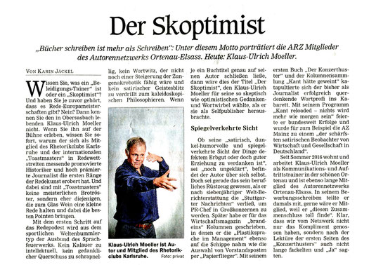 Autor - Kabarettist -Speaker - Kolumnist - Auftritts- und Kommunikations-Berater - Unternehmensinspirateur und Zukunftsanalyst in Sasbach